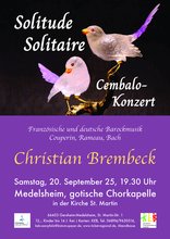 „Solitude Solitaire“ ist der Titel eines Konzertes mit Meisterwerken der Barockmusik, zu dem die Katholische Erwachsenenbildung Saarpfalz und die Pfarrei Heilig Kreuz Gersheim am Samstag, den 20. September 2025, 19:30 Uhr, in die gotische Chorkapelle der Kirche St. Martin in Medelsheim einladen. An diesem kunsthistorisch bedeutendem und akustisch außergewöhnlichem Ort gibt der international renommierte Cembalist Christian Brembeck (Berlin) ein Cembalo-Konzert. Der Titel bezieht sich insbesondere auf die vom Künstler ausgewählten Werke von Louis Couperin und Jean-Philippe Rameau, zwei der bedeutendsten französischen Barockkomponisten, deren Werke von hoher Ausdruckskraft und mentaler Intimität geprägt sind. Einen reizvollen Kontrast dazu bilden Kompositionen Johann Sebastian Bachs auf dem Programm dieses "solitären" Cembalo-Rezitals. Dargeboten werden die Werke am Nachbau eines historischen Cembalos aus dem 17. Jahrhundert, das sich im Besitz des Künstlers befindet. Erleben Sie ein erlesenes Programm einzigartiger Musik in der phantastischen Akustik der gotischen Chorkapelle der Medelsheimer Kirche.