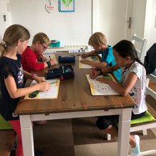 In Breitfurt bereiten sich die vier Grundschulkinder, die in diesem Jahr Erstkommunion feiern, gemeinsam in einer Kleingruppe, von den Müttern geleitet, auf ihr Fest vor (s. Foto).